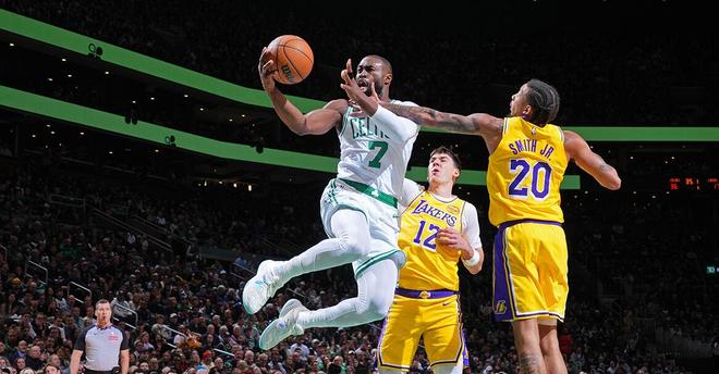 今天东契奇和詹姆斯双双缺阵,昨天砍下44分5板10助的里夫斯独自带队,依旧表现不俗,全场比赛出战33分钟,18投9中,三分球8中3,17罚15中,空砍36分3板8助的数据,背靠背两场比赛合砍80分8篮板18助攻。过去五场比赛,里夫斯场均也可以得到33.4分5.0篮板6.4助攻。里夫斯今天一个人就获得了17次罚球,而凯尔特人全队一共才12次。