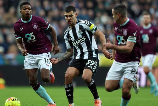 纽卡斯尔联排出433阵型。埃兰加、沃尔特马德和安东尼-戈登组成进攻三叉戟。雅各布-拉姆齐、吉马良斯和约瑟夫-威洛克搭档3中场。利夫拉门托、佳夫、舍尔和丹-伯恩4后卫首发出战。拉姆斯代尔担任首发门将。维萨、哈维-巴恩斯、雅各布-墨菲和托纳利坐在替补席待命。